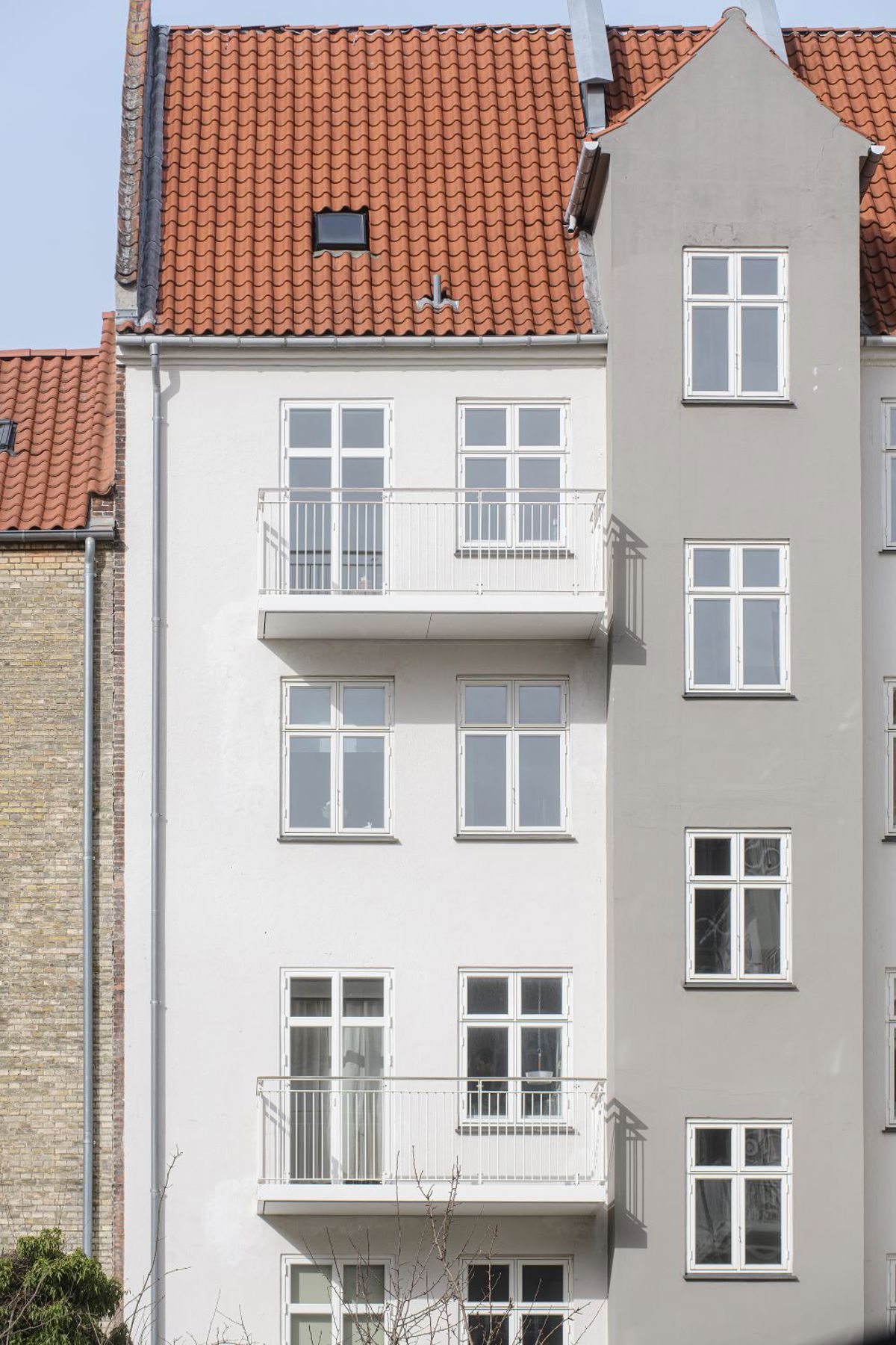 Denne opgave blev løst rigtigt fint med den høje sprosse, der imiterer posten på de gamle vinduer og på den måde passer dørene perfekt ind i ejendommens lette æstetik.